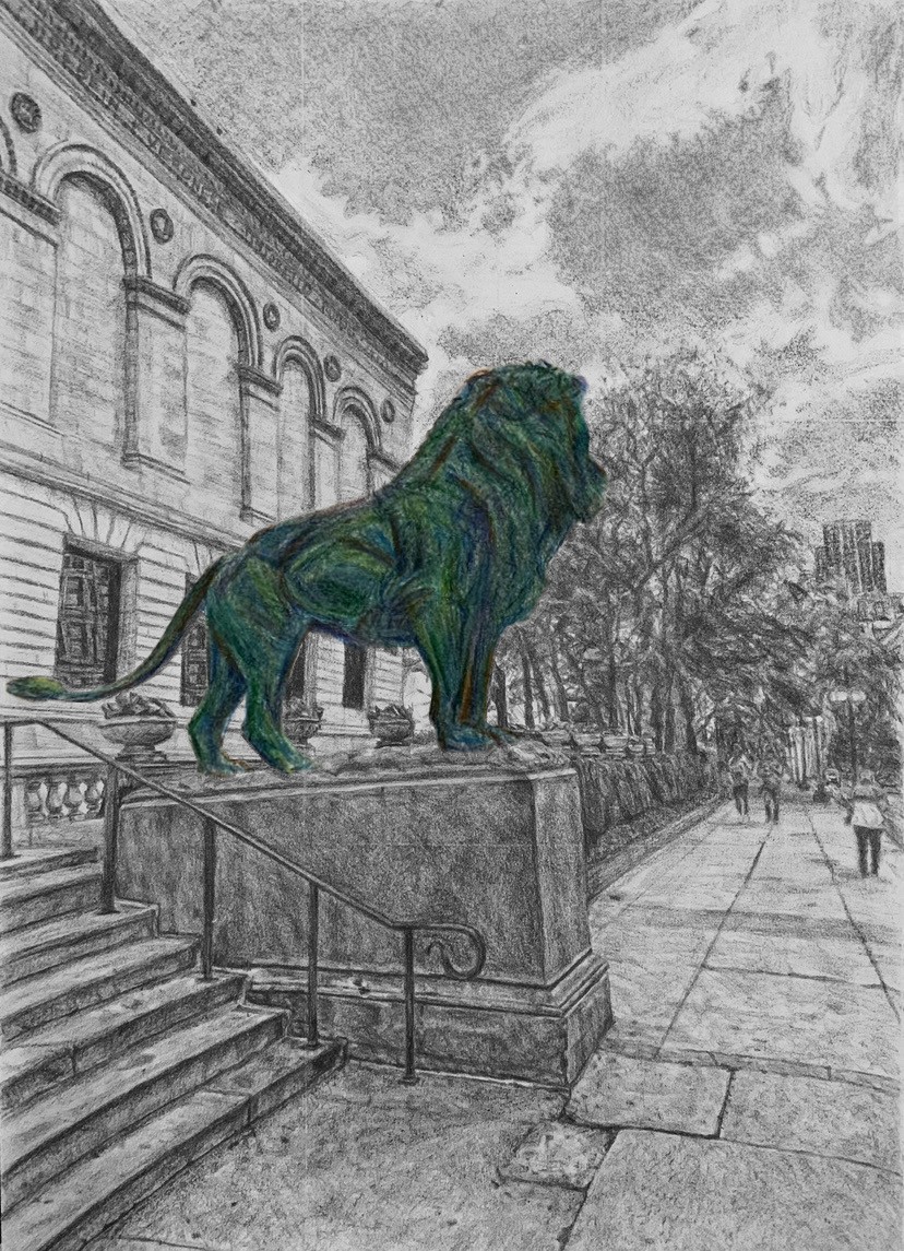 Going to a school just half a mile away from The Art Institute of Chicago, I've gotten to take advantage and visit The Art Institute many times in the past couple years. I wanted to capture one of their famous lion statues in this colored pencil piece, done entirely with a singular red colored pencil.